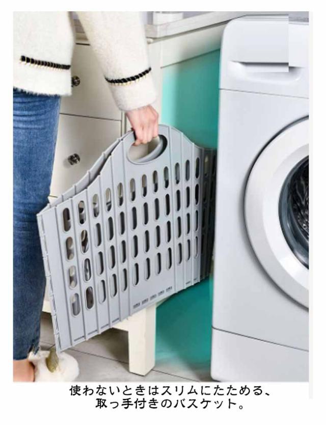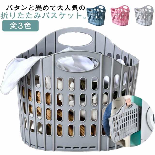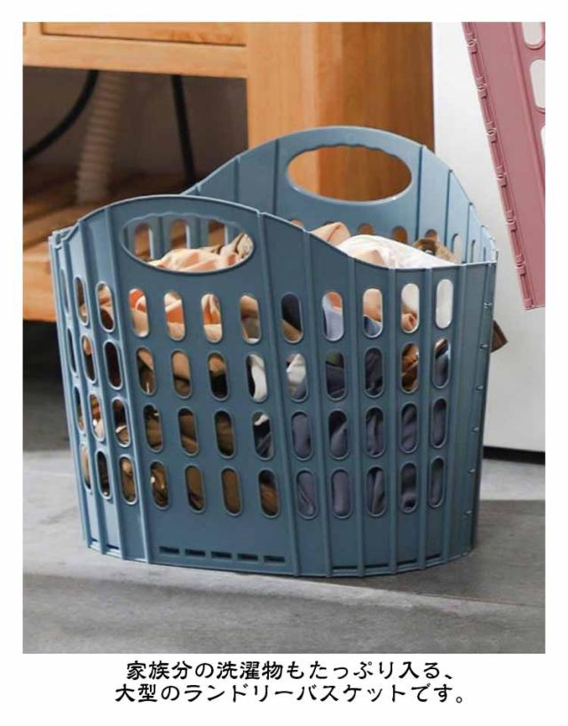 ランドリーバスケット 折りたたみ 大容量 洗濯かご 洗濯カゴ 持ち手 持ち手付き スリム 省スペース コンパクト 軽い 軽量 折り畳みかご 洗濯物入れ 収納バスケット 無地 全3色