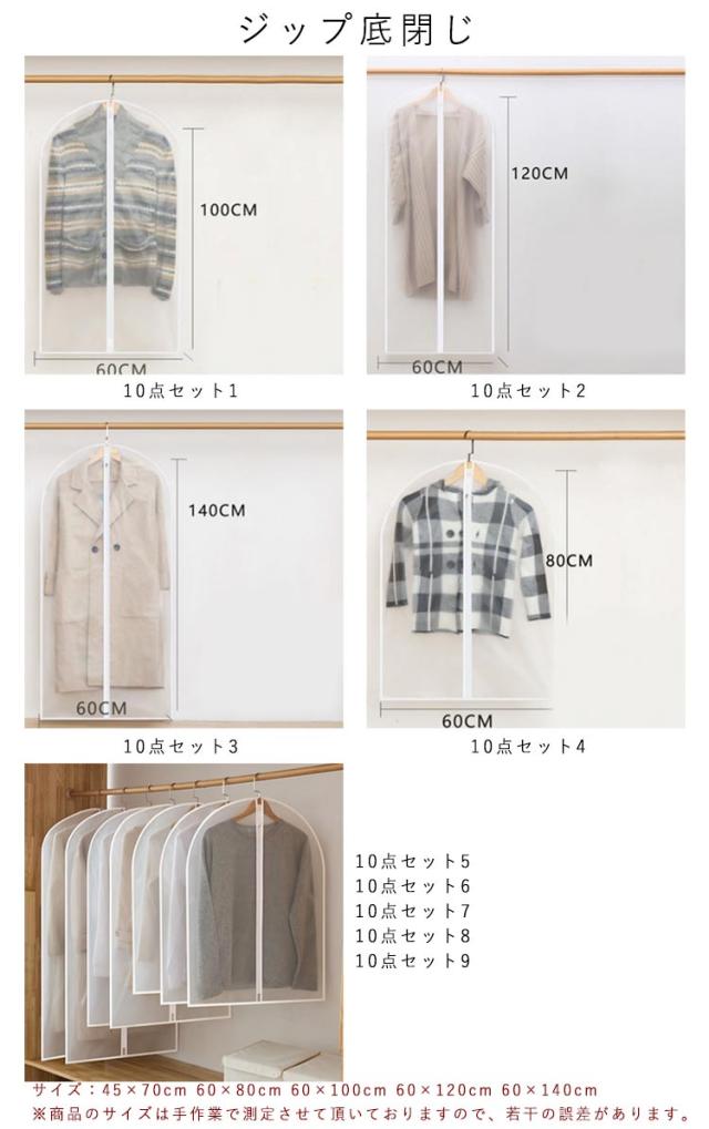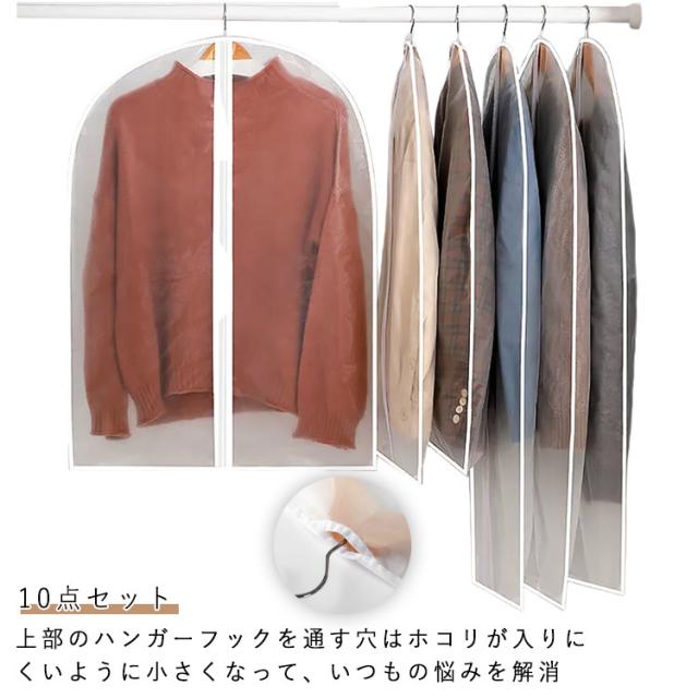 洋服カバー 洗える 10枚 半身透明 ほこり除け 60×80cm 衣類カバー クローゼット収納 衣類収納 通気性 防湿 スーツカバー コートカバー ダストカバー 防水 45×70cm 洗える 60×100cm 60×120cm
