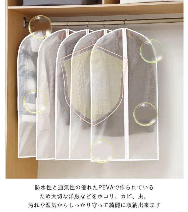 洋服カバー 【全5サイズ!子供用サイズも!】洗える 10枚 半身透明 ほこり除け 60×80cm 衣類カバー クローゼット収納 衣類収納 通気性 防湿 スーツカバー コートカバー ダストカバー 防水 45×70cm 【全5サイズ!子供用サイズも!】洗える 60×100cm 60×120cm