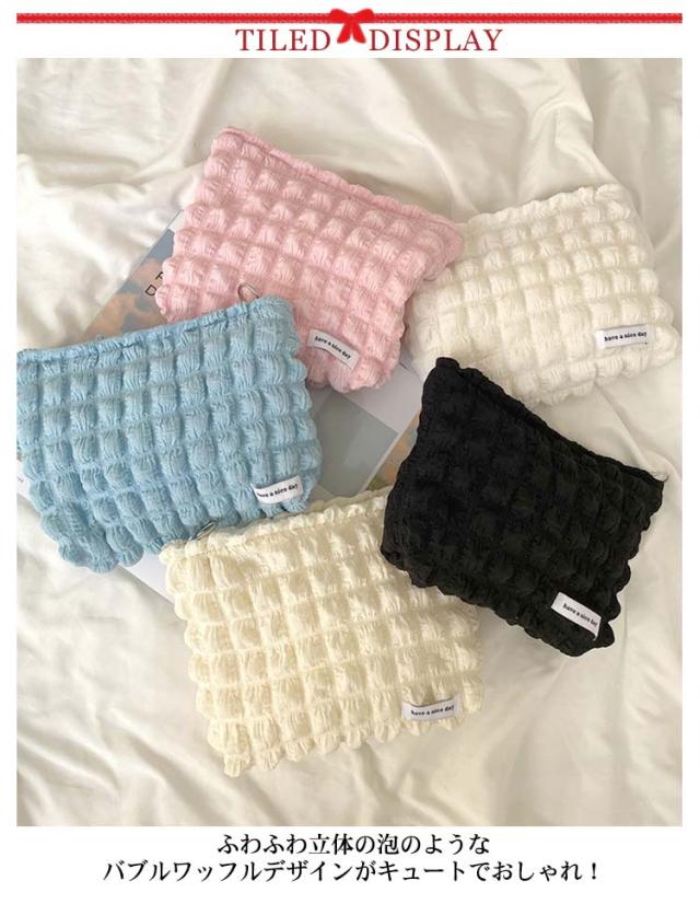| トレンドのポップコーンのような生地感がおしゃれなペンケース。 ふわふわ立体の泡のようなバブルワッフルデザインがキュートでおしゃれ! 大きすぎず小さすぎない「ちょうどいい」サイズ♪ 持っているだけで気分があがるオシャレなデザイン。 メイク用品を入れたり、文房具を入れたり、あなた次第で使い方もいろいろ。 持ちやすいなカラーから、パステルカラー全7色をご用意しました♪ | |