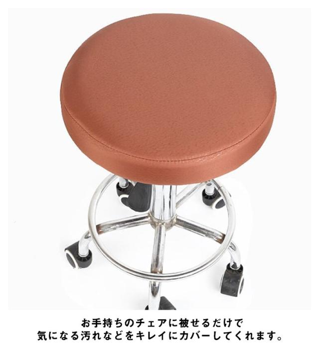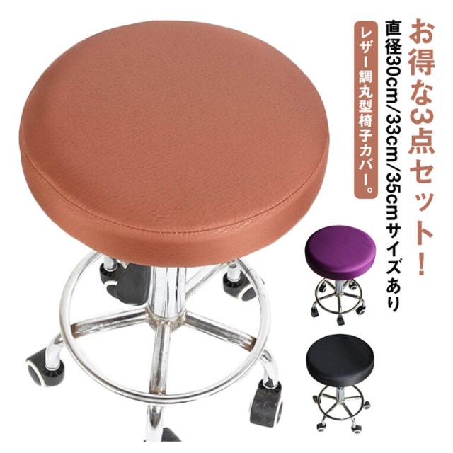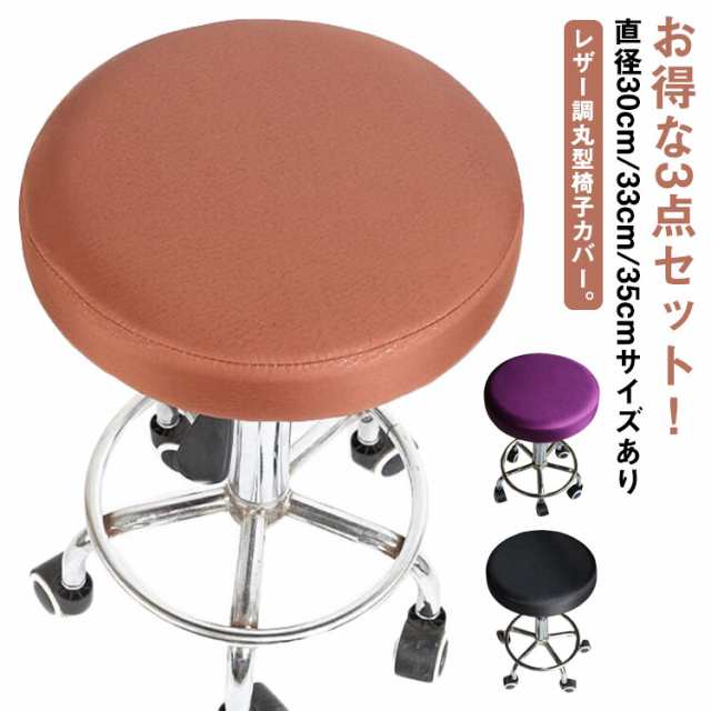 | レザー調丸型椅子カバー。【お得な3点セット!】【直径30cm/33cm/35cmサイズあり】 柔らかく光沢のあるレザー調の生地がワンランク上の空間を作ってくれます。模様替えにも! チェアをしっかり包み込むよう、フチにゴム紐が付いています。 防水加工がされているので、飲み物や食べ物をこぼしても、染み込む心配がありません。お子様のいるご家庭でも安心。 お手持ちのチェアに被せるだけで気になる汚れなどをキレイにカバーしてくれます。 | |