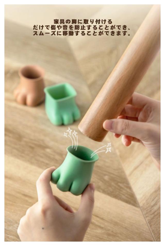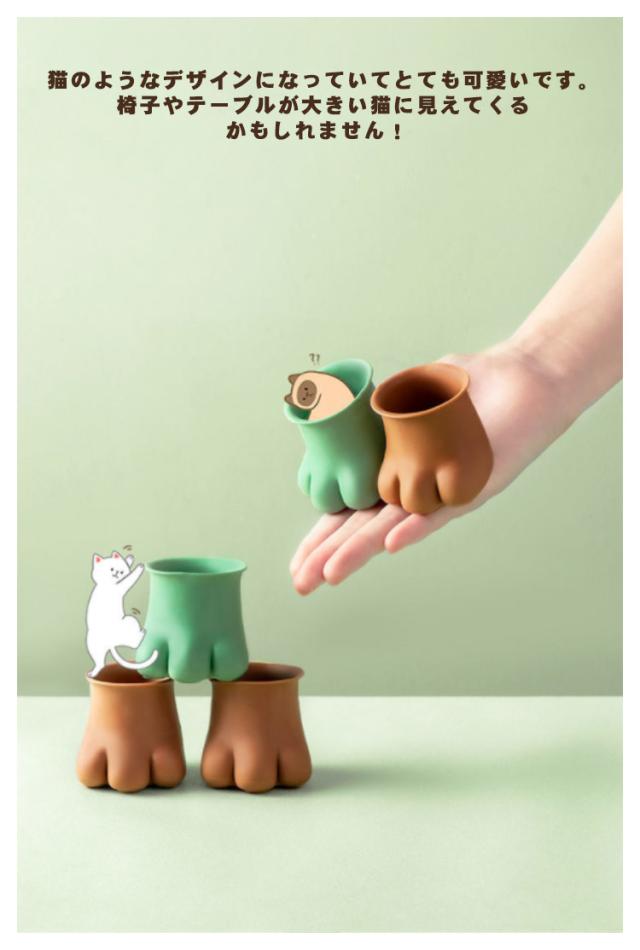 | 可愛さ満点!猫足の形をした椅子脚の保護カバーです。 椅子に履かせるだけの簡単設置。とっても柔らかなシリコン素材でぴったりフィット! 猫のようなデザインになっていてとても可愛いです。椅子やテーブルが大きい猫に見えてくるかもしれません! 家具の脚に取り付けるだけで傷や音を防止することができ、スムーズに移動することができます。 掃除のときに椅子をあげても、落ちる心配がありません。 お得な8個セット、イスだけではなくキーボード・ピアノ・テーブル・机・デスク等にもご使用いただけます。 | |