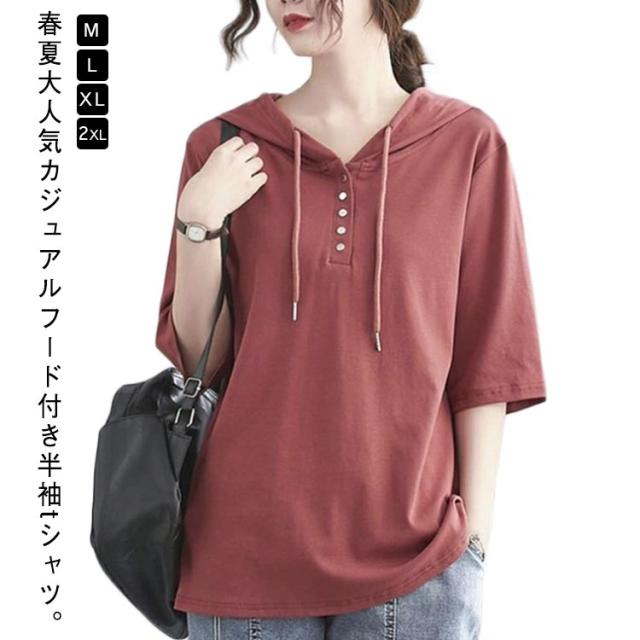 トップス tシャツ 薄手パーカー フード付きtシャツ 半袖パーカー 夏物 Tシャツ フード付き 半袖 夏 カットソー プルオーバー レディース 薄手 夏服 大きサイズ シンプ 無地