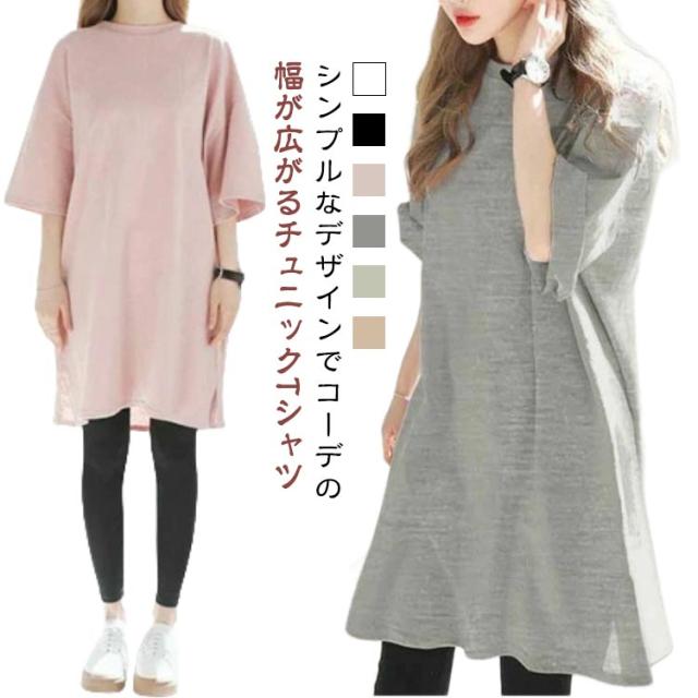 ワンピース チュニックTシャツ 無地 レディースファッション 続々入荷中 ホワイト ブラック ピンク ライトグレー ミントグリーン ベージュ L XL
