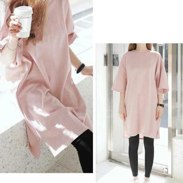 ワンピース チュニックTシャツ 無地 春夏 サイドスリット ゆったり ゆるTシャツ Tシャツワンピース レディース 半袖 カットソー ロンT 五分袖 シンプル ロングTシャツ チュニック チ Tシャツ