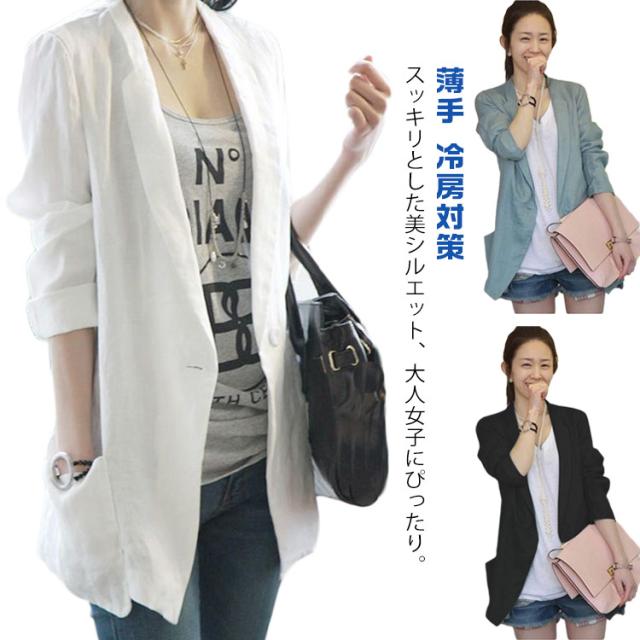 テーラードジャケット サマージャケット 春 ミドル丈 ライトアウター オフィス 長袖 通勤 ナチュラル トップス 無地 夏 薄手 冷房対策 アウター エレガント 普段着 レデ 仕事用