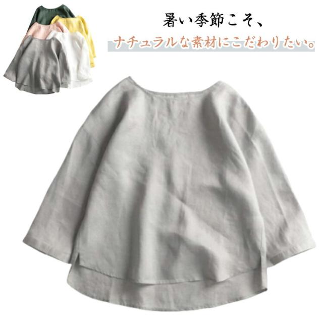 春 リネン 夏 シャツブラウス 綿麻 コットン トップス 体型カバー 綿 七分袖 パジャマ ラウンドネック ゆったり 軽量 ブラウス 無地 大きいサイズ 可愛い ルームウェア