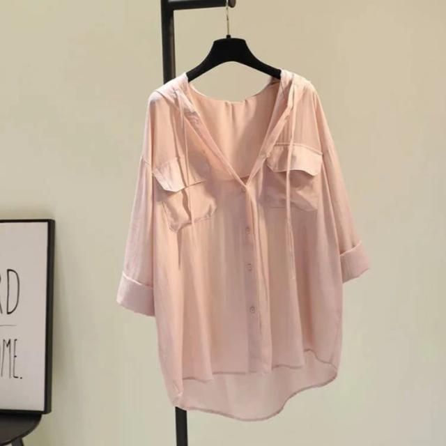 フード付きシャツ ゆったり 綿混 オーバーサイズ 薄手 シースルーシャツ 透け感 フード付き 長袖 レディース シアーシャツ シャツ