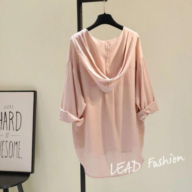 フード付きシャツ ゆったり 綿混 オー レディースファッション 続々登場 ホワイト ブルー ピンク S M L XL 2XL