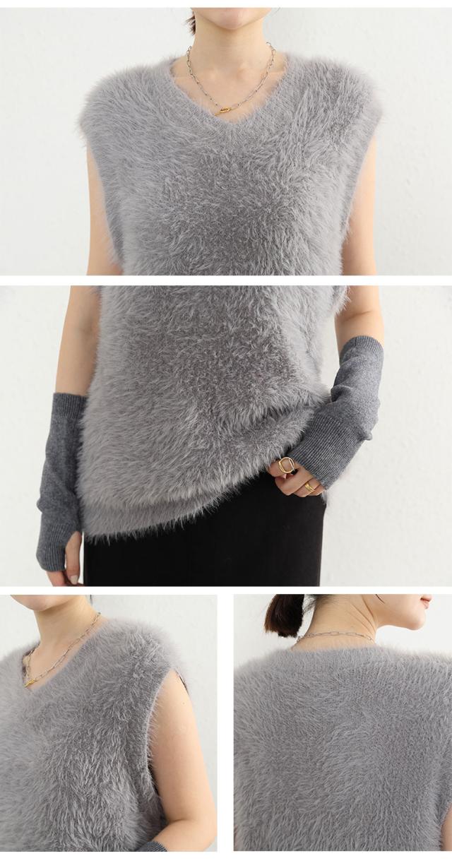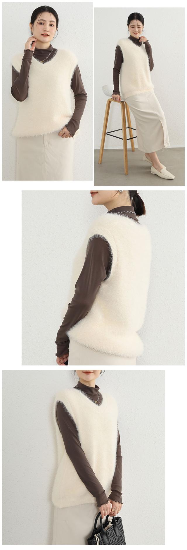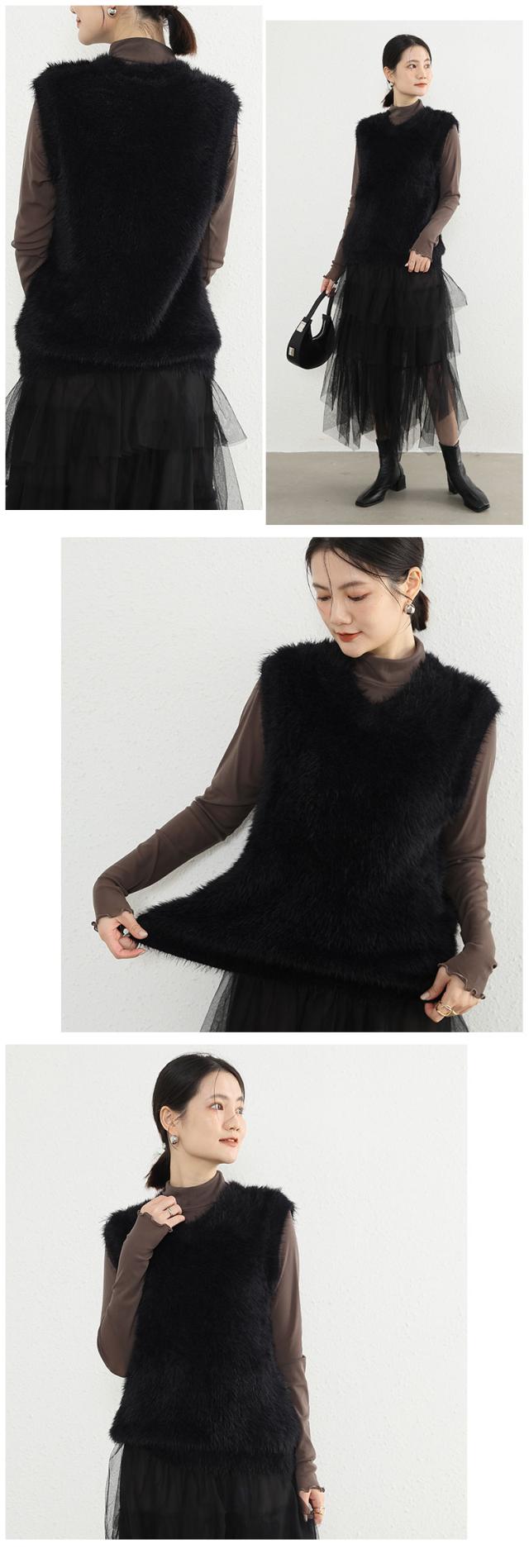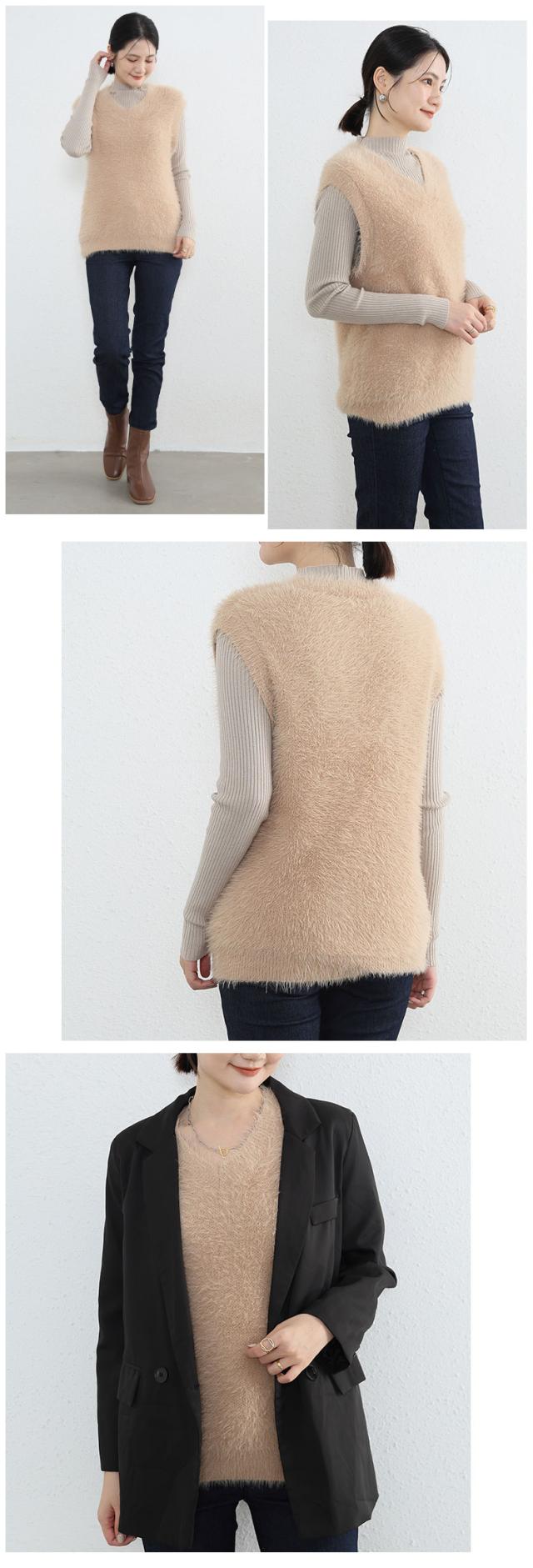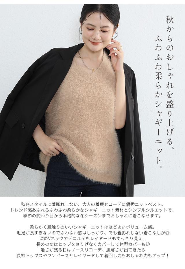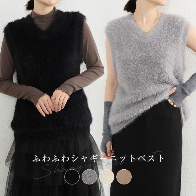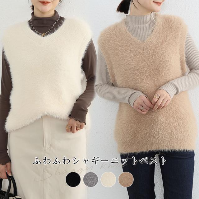 3B26 シャギー ニット ベスト トップス ふわふわ 暖か 可愛い レイヤードコーデ フェザー プルオーバー ニットソー レディース ふんわり 秋 冬 おしゃれ 春