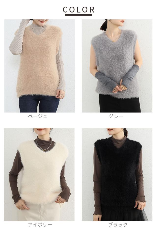 3B26 シャギー ニット ベスト ト レディースファッション 割引 ベージュ グレー アイボリー ブラック