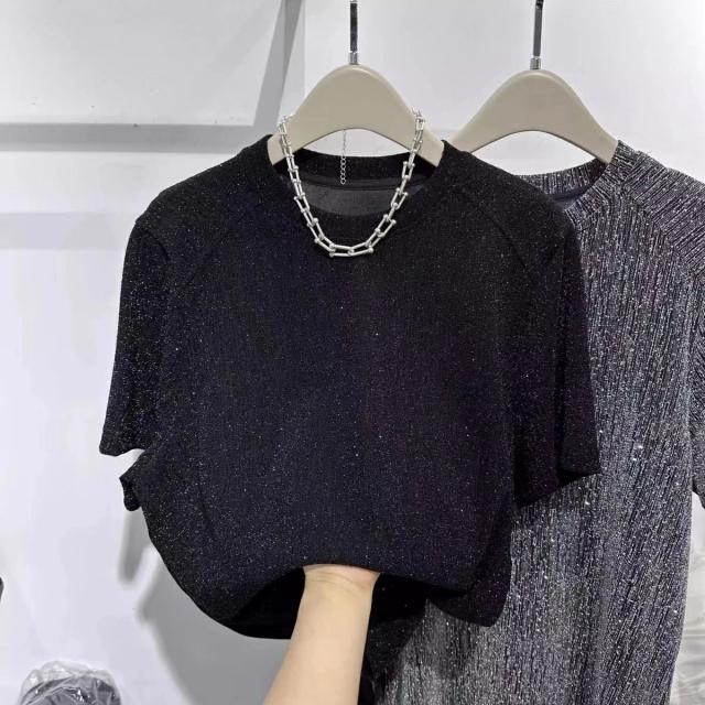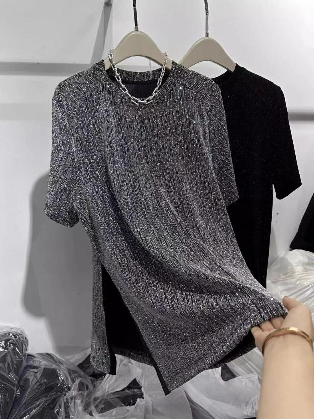 かわいい 可愛い 体型カバー ゆるカットソー 大きいサイズ カジュアル ラメtシャツ キレイめトップス 半袖 tシャツ きらきら