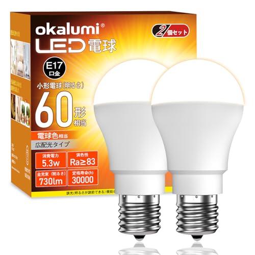 okalumi LED電球 E17口金 60W形 ミニクリプトン・ミニランプ形電球 電球色 2700k 小形電球 広配光 調光不可 断熱材施工器具/密閉器具対応 2個セット
