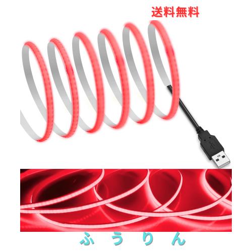 【RYE】 COB テープライトLEDストリップライトフレキシブル 高密度 幅5mm 隠れたLEDテープライト1m 320LEDs/m 赤色 DC5V 180°発光CRI>=9