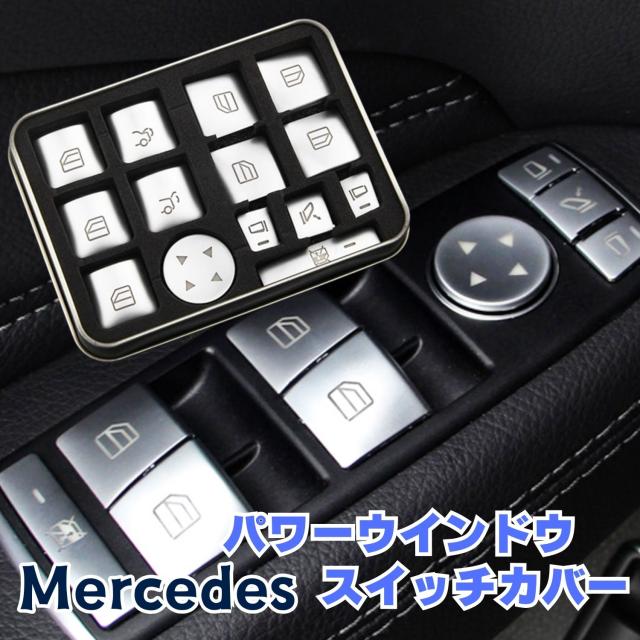 メルセデスベンツ A・B・Cクラスに適合するパワーウインドウスイッチカバーの14点セット。 各スイッチは透過式で、ライト点灯時に美しく光ります。 ABS樹脂製。耐久性と高級感を兼ね備えています。簡単な貼り付け式で、左右ハンドルどちらにも対応可能です。