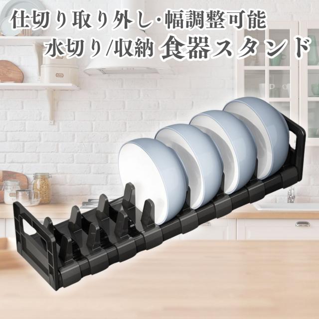 送料無料 ディッシュスタンド 皿立て 収納 水切り 食器 引き出し 皿 おしゃれ 調整 スライド ラック