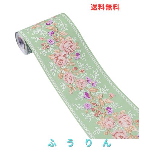 ◆商品名:HIGHAWKトリムボーダー 壁紙 シール リフォーム 撥水 防油 可愛い DIY 北欧風 インテリア 10.5cm*10m(グリーン 牡丹)