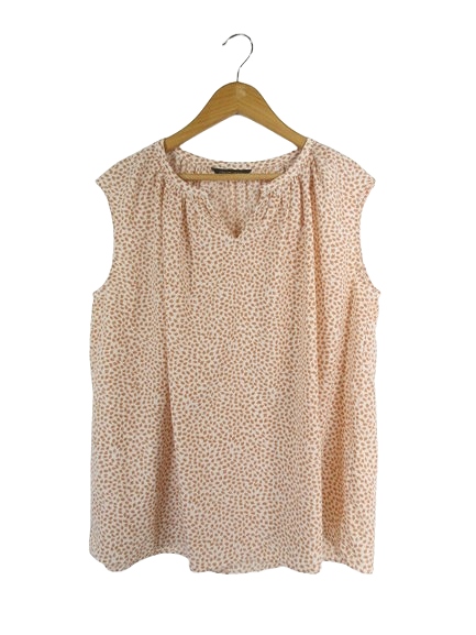 【中古】ユナイテッドアローズ クローゼット ストーリー ブラウス ノースリーブ リーフ 総柄 ブラウン 白 レディース
