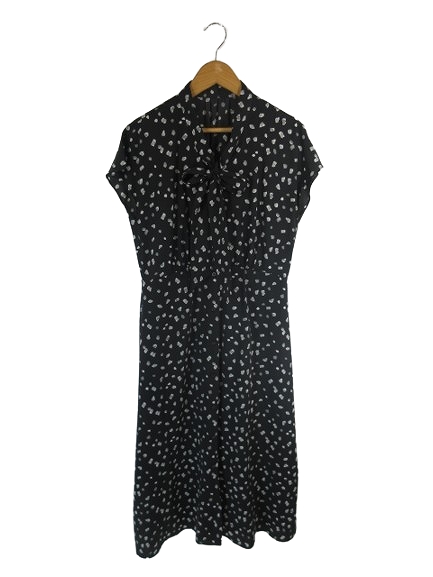 【中古】インデックス INDEX ワンピース シャツ ノースリーブ ロング ドット柄 リボン ブラック サイズM レディース