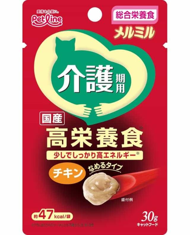●介護期の食が細くなった猫に、少量でしっかり栄養補給ができる高エネルギー設計(グラムあたりカロリー15歳から比約1.5倍)。 ●優しいうまみのチキン味。 4902418531908