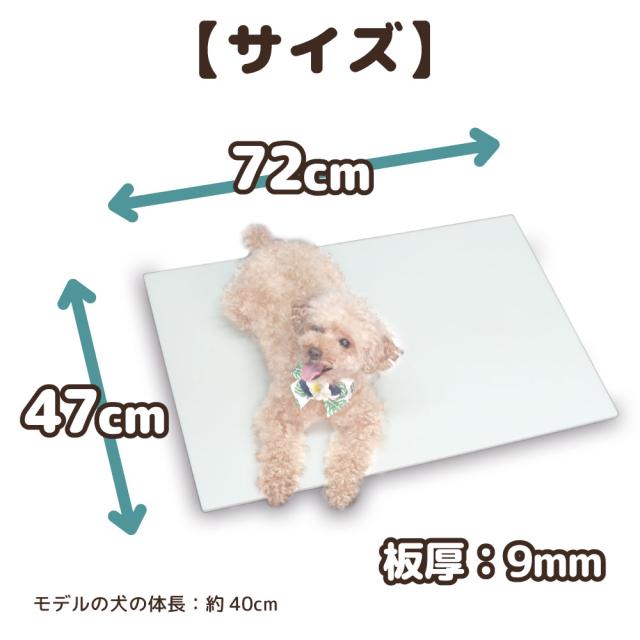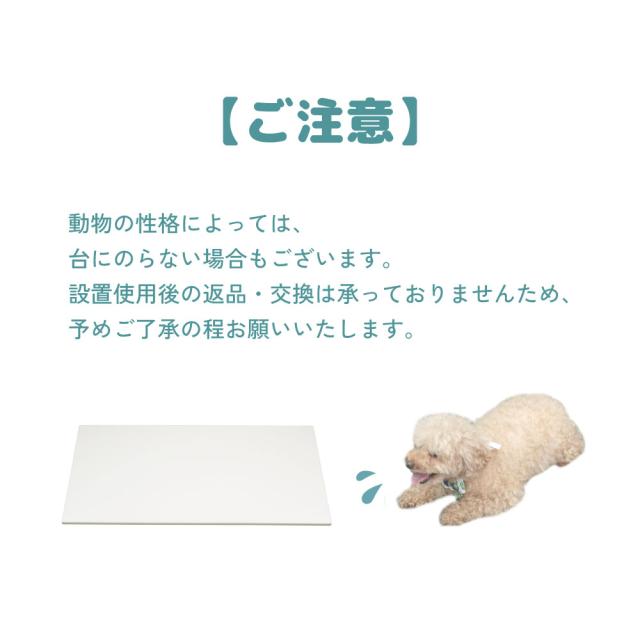 自然なひんやり感、冷たすぎるのが苦手な子にもピッタリ! 大きいサイズでのびのび使えます。 汚れても丸洗いでき、汚れが染み込まず、すぐ拭き取れるのでお手入れ簡単! 冬の間はテーブルの天板、目隠しなどにもお使いいただけます。 安心・高品質の日本製、アクリル樹脂の人工大理石製 ※動物の体温より高い場所、日光の当たる場所、屋外など環境によりひんやり感が得にくくなるため、涼しい場所でお使いいただくことをお勧めいたします。 ※ペットの性格によって乗らない場合もございます。ご了承の程お願いいたします。※ ※持ち運びの際は、必ず両手でお持ちになり落下しないようお気を付けください。 |