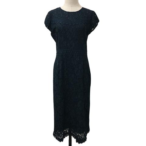 【中古】グローブ grove ワンピース Iライン ロング 総レース フレンチスリーブ 半袖 M 緑 グリーン レディース