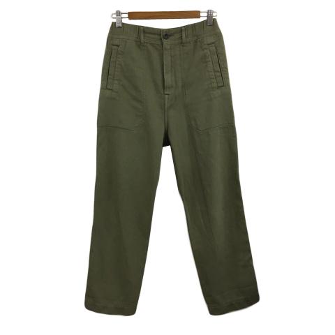 【中古】アールエヌエー URCH パンツ ワーク テーパード ロング ウエストゴム 無地 リネン混 M 緑 グリーン