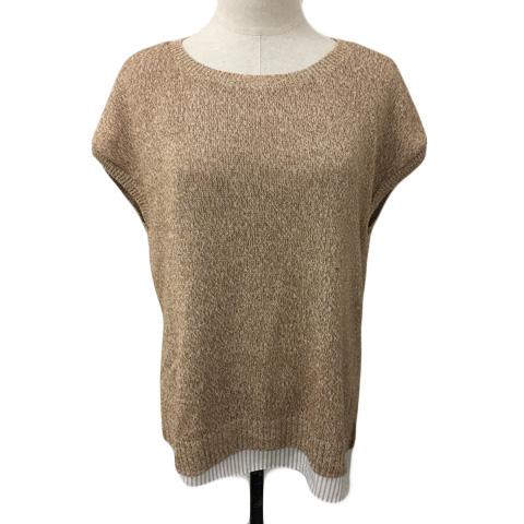 【中古】インディヴィ セーター ニット カットソー プルオーバー 切替 レイヤード風 無地 ストライプ 半袖 38 茶