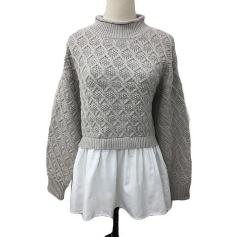 【中古】グローバルワーク セーター ニット ハイネック プルオーバー ドッキング ケーブル編み 長袖 M グレー 白