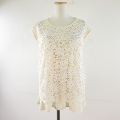 【中古】Rondeur カットソー ノースリーブ レース リバーシブル オフホワイト ライトベージュ *T696 レディース