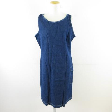 【中古】Giani Feroti デニムワンピース ノースリーブ ひざ丈 紺 L *T712 レディース