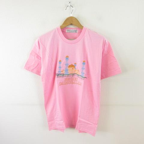 【中古】cotton club カットソー Tシャツ 半袖 刺繍 ピンク M *T716 メンズ