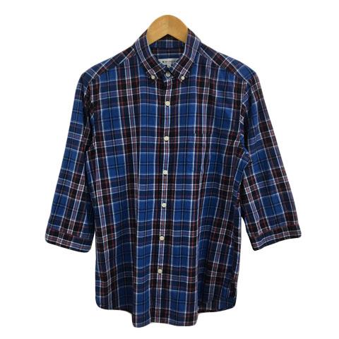 【中古】ザショップティーケー シャツ カジュアル ボタンダウン チェック タック 七分袖 L 青 黒 ブルー ブラック