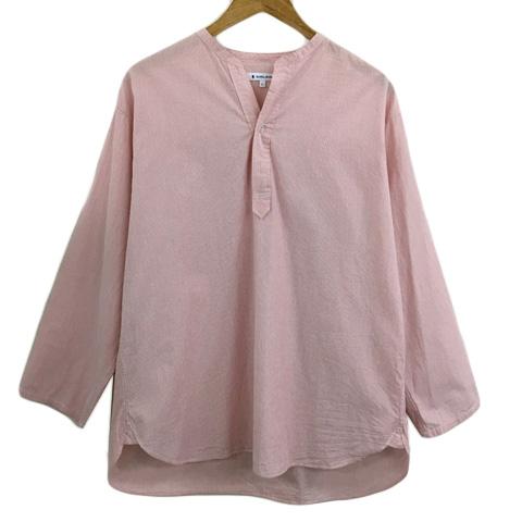 【中古】グローバルワーク シャツ カジュアル プルオーバー スキッパー ストライプ 長袖 L 赤 白 レッド ホワイト