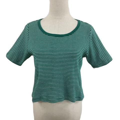 【中古】フーズフーチコ カットソー Tシャツ ラウンドネック プルオーバー ショート丈 ボーダー 半袖 F 緑 白