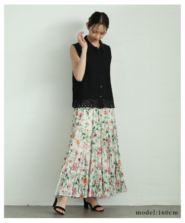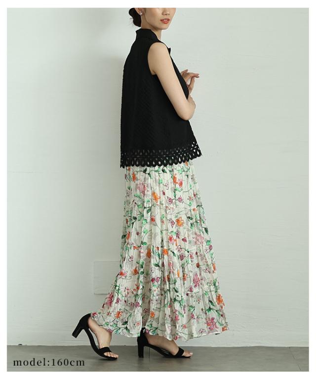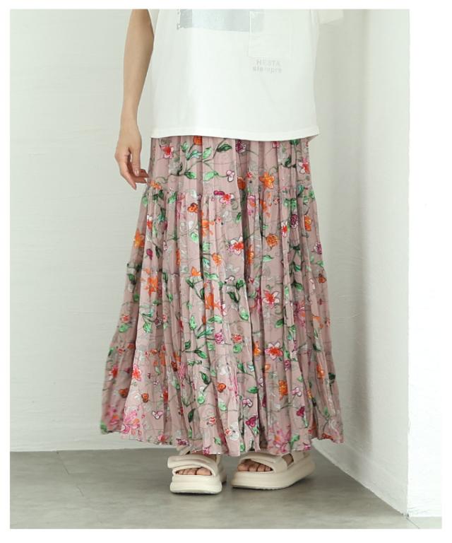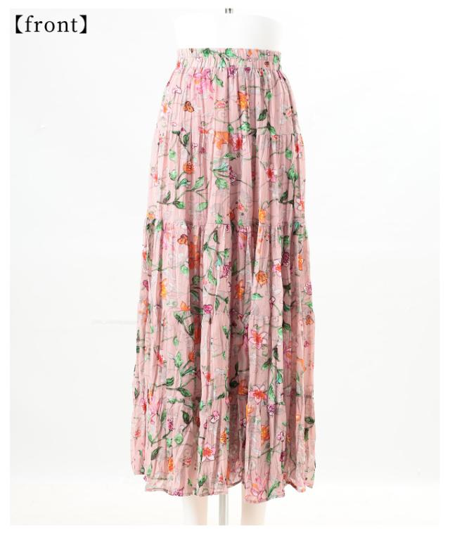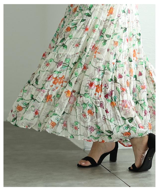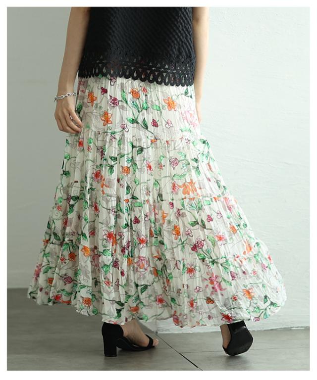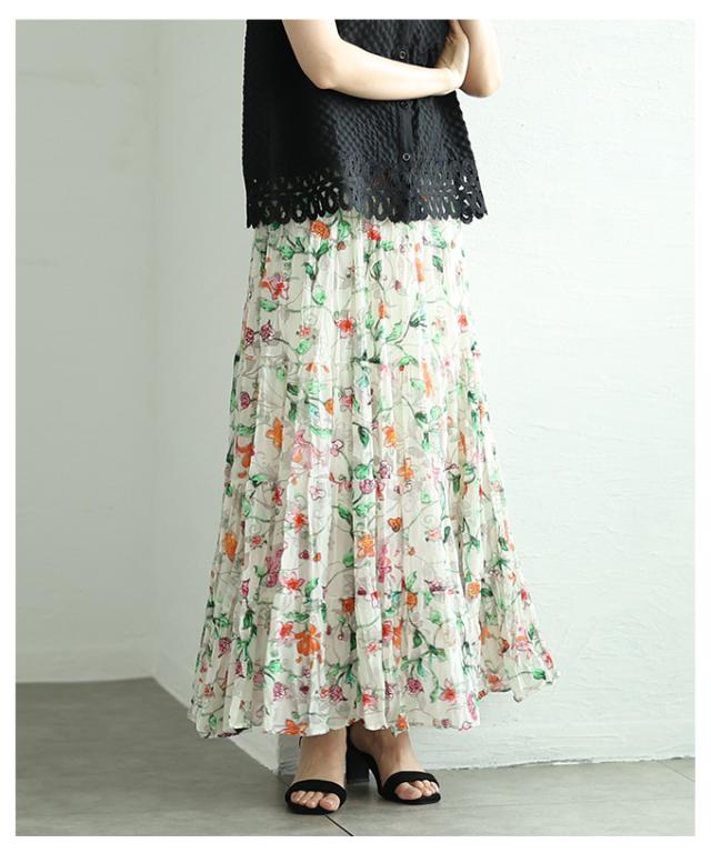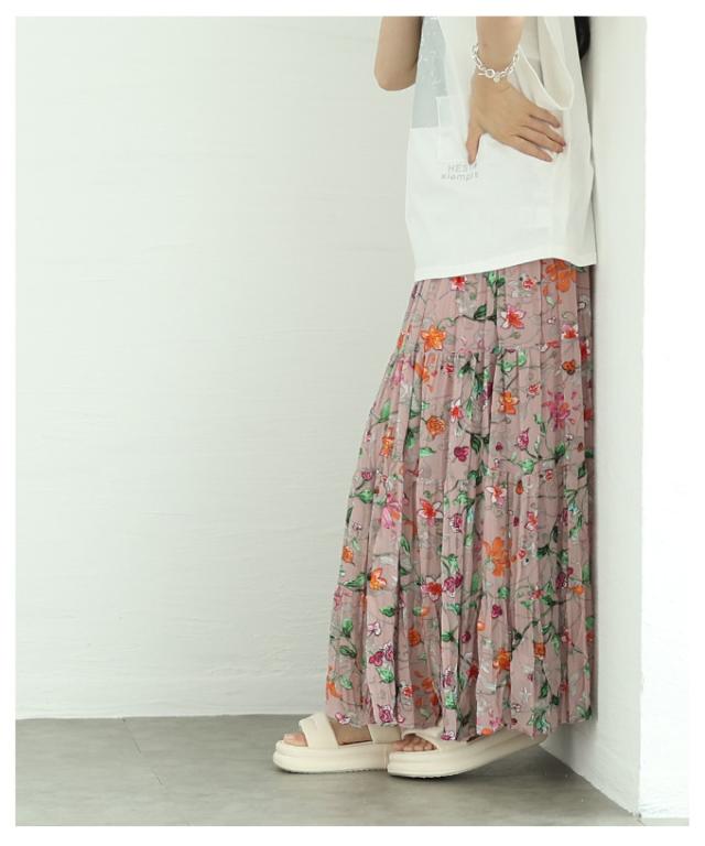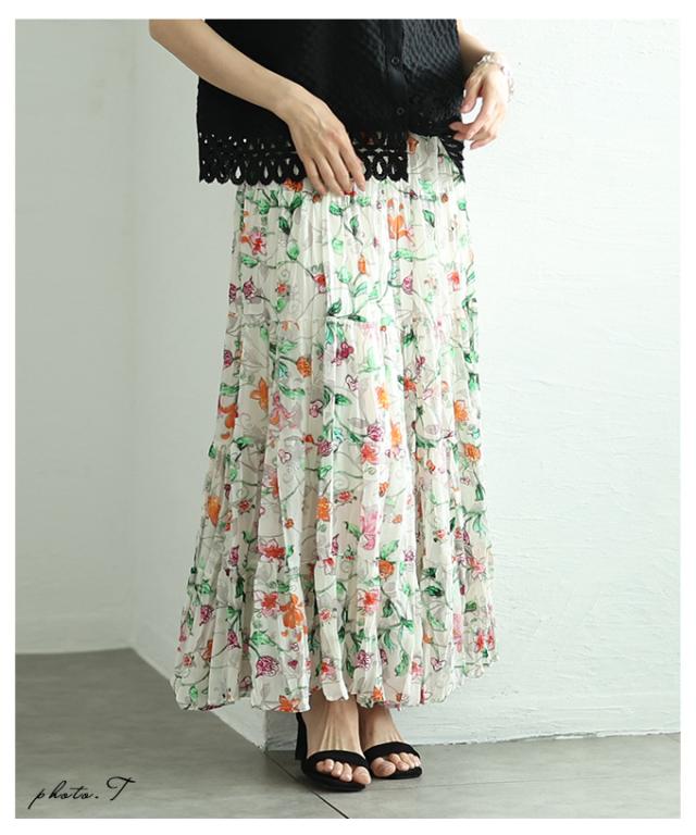 春新作 ロマンティックな花の世界が広がるティアードシフォンスカート レディース ファッション ボトムス スカート 花柄 夏服 大人可愛い 20代 30代 40代 レディースファッション カジュアル 体型カバー おしゃれ きれいめ ママ サワアラモード sawaalamode mode-10005