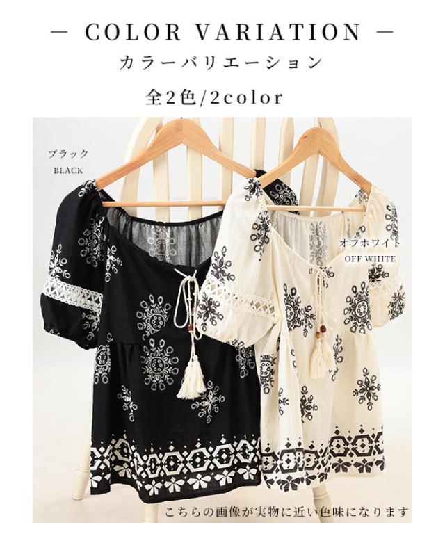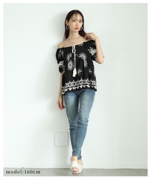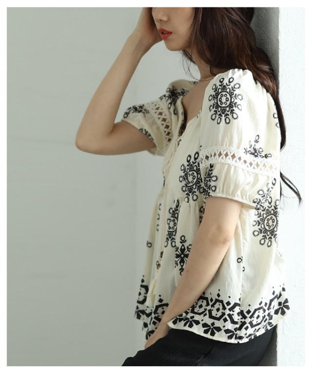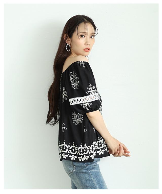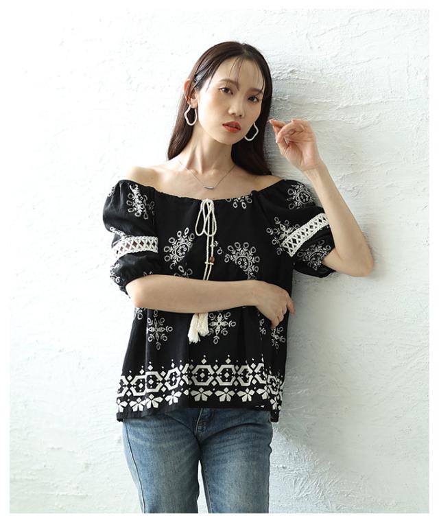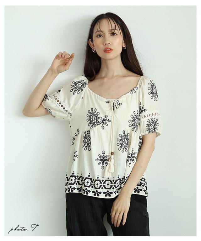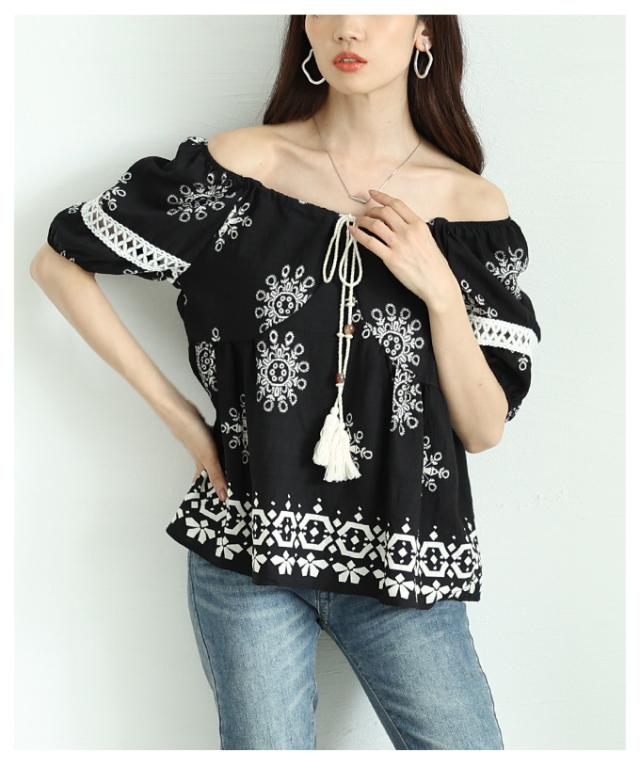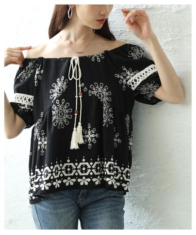 春新作 ナチュラルな風合いを愉しむエスニック刺繍の2wayショルダートップス レディース ファッション トップス シャツ 夏服 大人可愛い 20代 30代 40代 レディースファッション カジュアル 体型カバー おしゃれ きれいめ ママ サワアラモード sawaalamode mode-9999