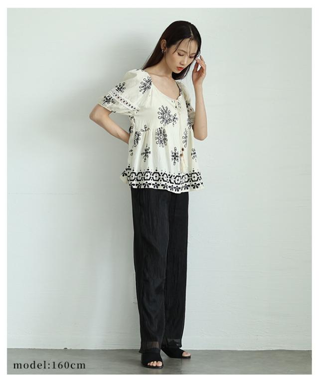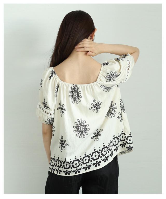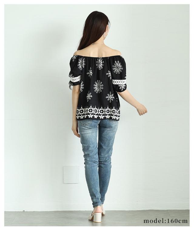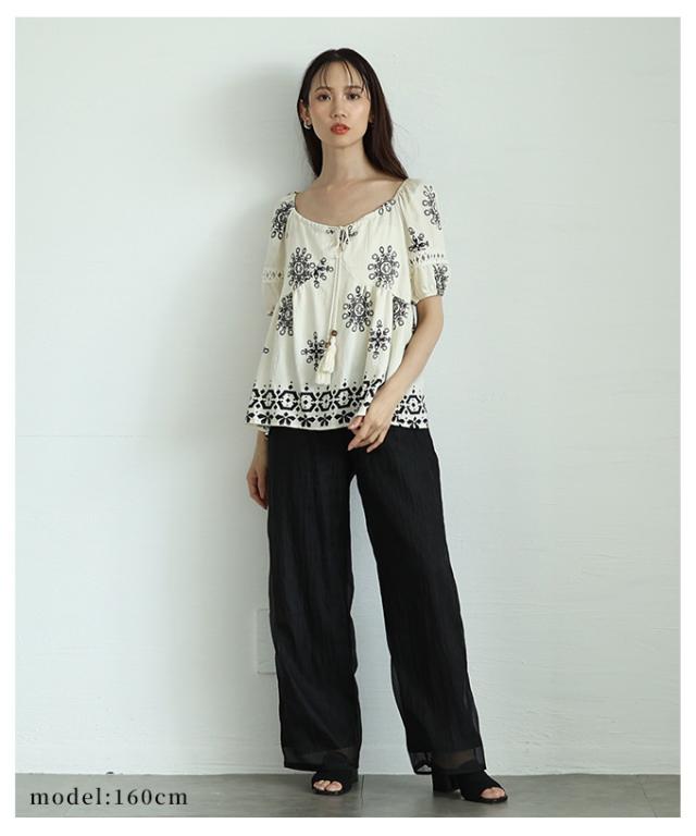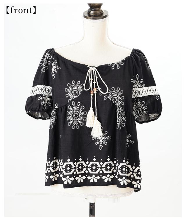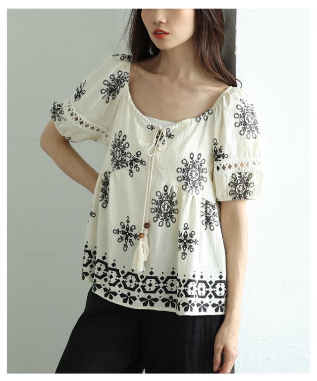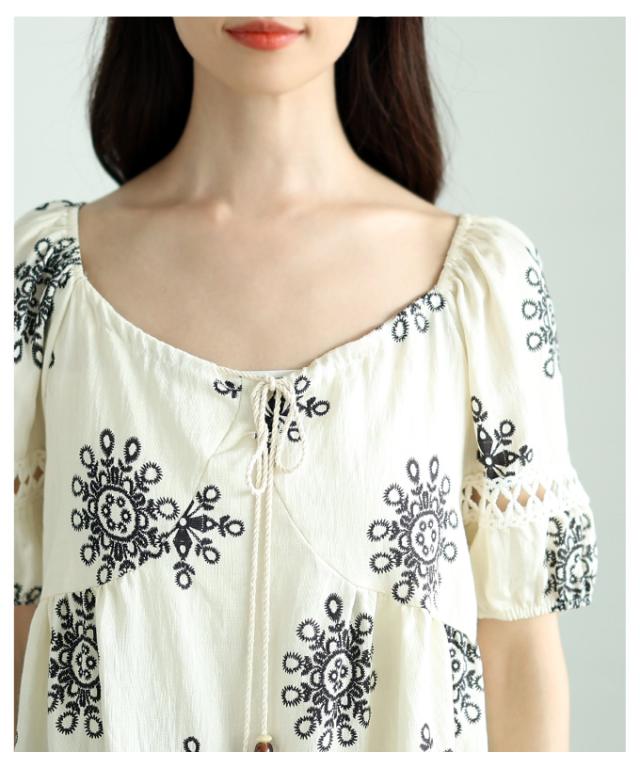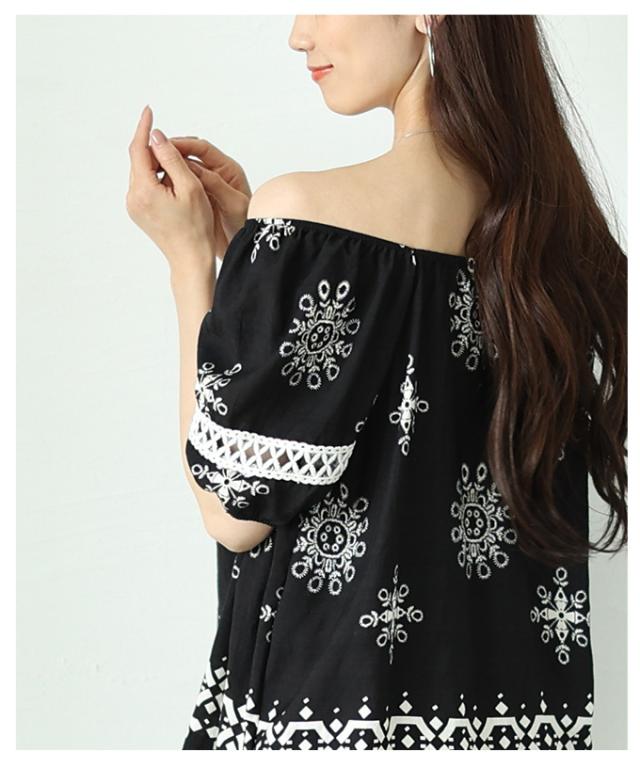 春新作 ナチュラルな風合いを愉しむエスニック刺繍の2wayショルダートップス レディース ファッション トップス シャツ 夏服 大人可愛い 20代 30代 40代 レディースファッション カジュアル 体型カバー おしゃれ きれいめ ママ サワアラモード sawaalamode mode-9999