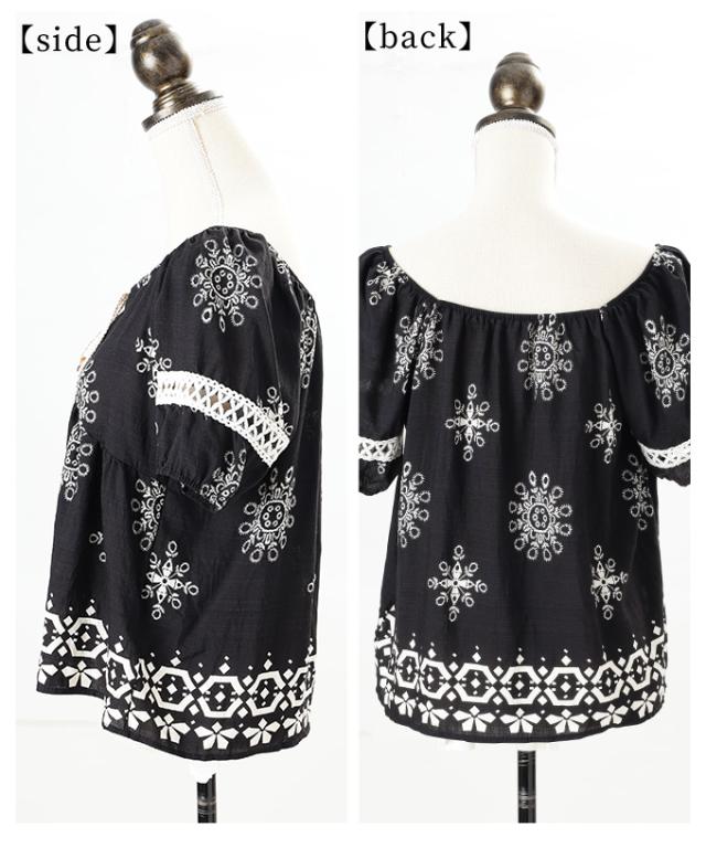商品名: ナチュラルなエスニック刺繍の2wayショルダートップス