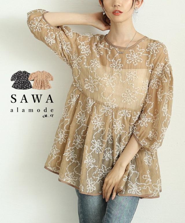 春新作 可憐な抜け感纏うフリンジ風花柄刺繍パフスリーブペプラムシアートップス レディース ファッション トップス 花柄 刺繍 パフスリーブ ペプラム 夏 30代 40代 50代 60代 サワアラモード sawaalamode otona 大人 cawaii 可愛い 洋服 かわいい服 almam-1747