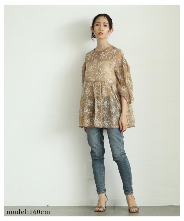 商品名: 花柄刺繍パフスリーブペプラムシアートップス