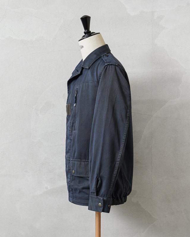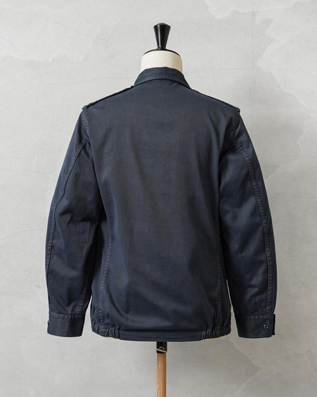 こちらは元々オリーブだったものをネイビーカラーにオーバーダイ(後染め)がされていますが、放出された後にヨーロッパ本国で製品染めが施されたアイテム。後染め特有の独特な雰囲気は、コーディネートによってはクラシカルな趣や、ラギットな印象も与えてくれる希少かつ万能な一枚です。生地はコットンとポリエステルの混紡素材を採用。コットンの吸湿性や肌触りの良さと、ポリエステルの耐久性や速乾性、シワになりにくいといった特徴のある素材で、通年快適に着用可能です。