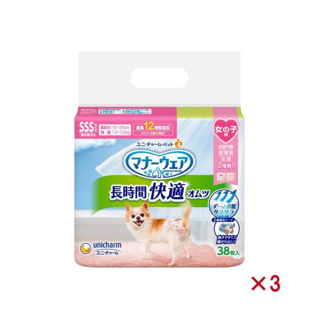 【セット販売】 ユニ・チャーム マナーウェア長時間快適オムツ女の子用SSS 38枚 (×3セット)