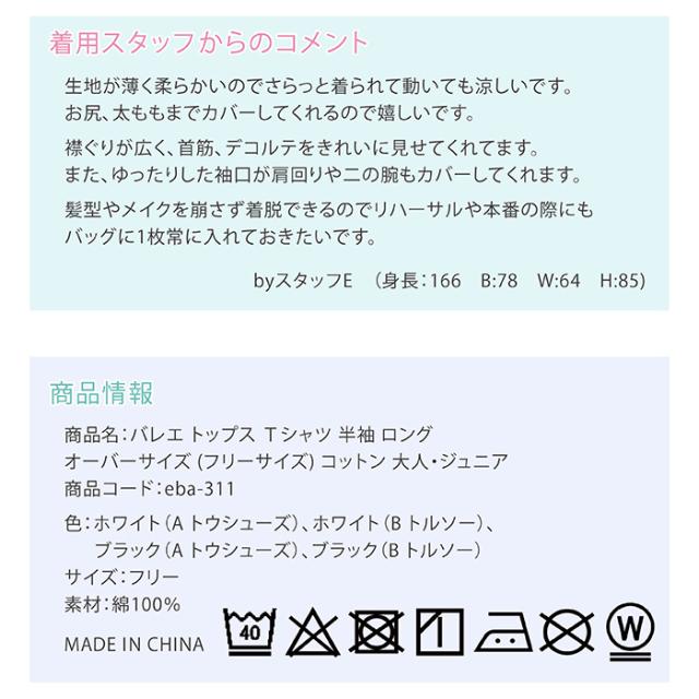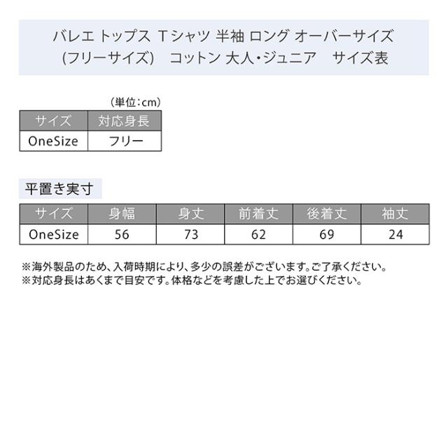 バレエ トップス Tシャツ 半袖 ロング オーバーサイズ (フリーサイズ) コットン 大人・ジュニア