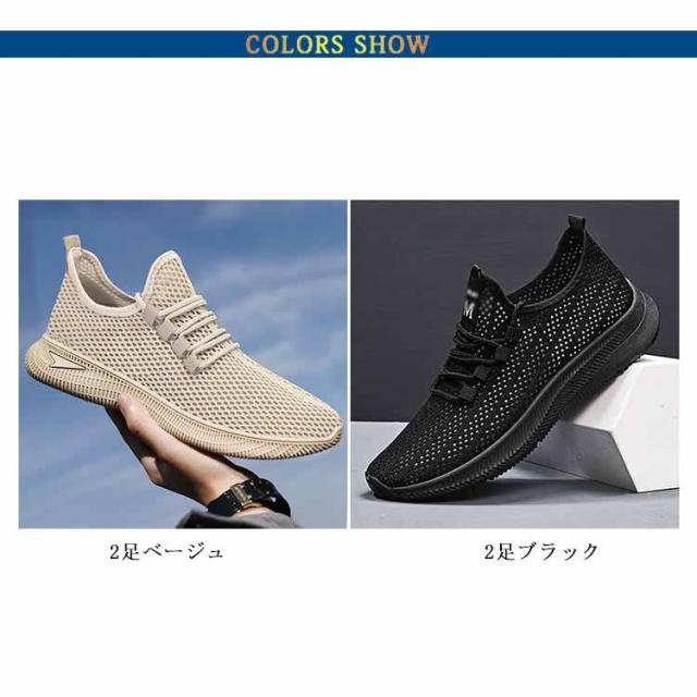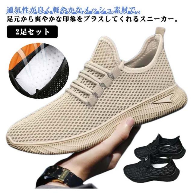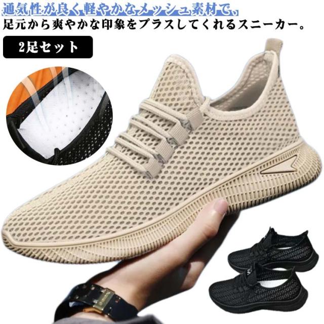 メンズ 2足セット ランニング メッシュ スリッポン 2足セット ランニングシューズ スニーカー 軽量 夏 サマーシューズ シューズ 大きサイズ 滑り止め カジュアルサンダル 通気性 スポーツシューズ