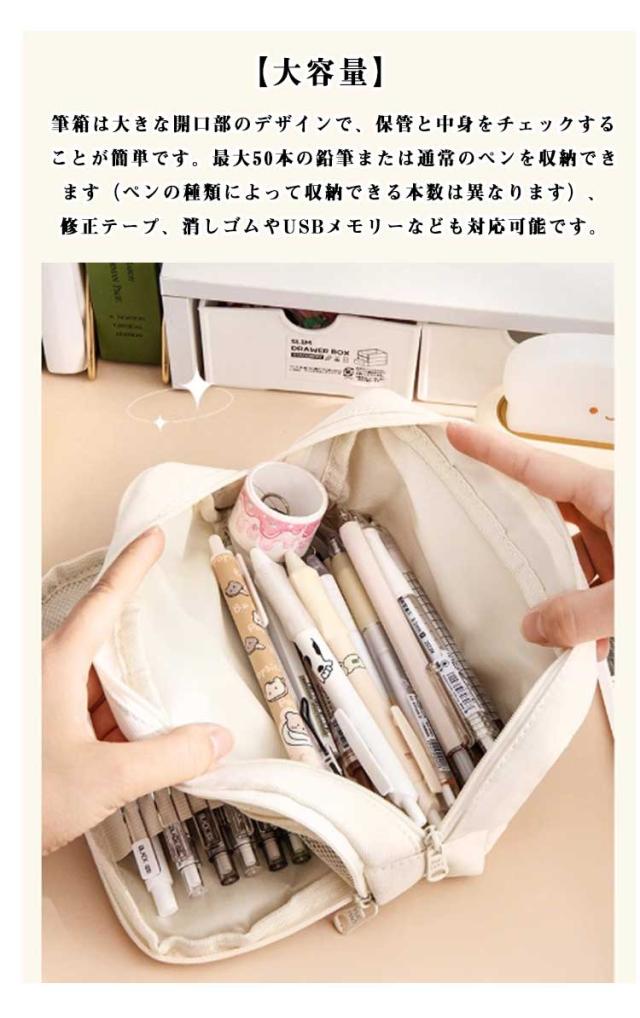 | 【持ち運びに便利】 持ち運びにも便利で、バッグなどからの取り出しにも便利です。軽量でコンパクト、バックパックに簡単入れ、毎日の通学に最適です。ファスナーが滑らかで、スムーズに使えます。大容量で、ペンや文房具をたくさん入れることができます。上部の大きな開口部がデザインされており、取り出しや検索に便利です。 【大容量】 筆箱は大きな開口部のデザインで、保管と中身をチェックすることが簡単です。最大70本の鉛筆または通常のペンを収納できます(ペンの種類によって収納できる本数は異なります)、修正テープ、消しゴムやUSBメモリーなども対応可能です。 【シンプル耐久性】 シンプルだが単調ではないおしゃれ韓国風、滑らかなファスナーで開閉が容易で肌触りが良く、ファスナーが丈夫で耐久性に優れ、安全で実用的な筆箱です。ピュアカラーの外観とシンプルな造りで、テーブルの上に置いてインテリアにするのも素敵です。 【人気ペンケース】 学校やオフィス、ほとんどの場合には適合です。学校やオフィスでの使用に最適で、ペンケースとしてだけでなく、ポーチや雑物バッグとしても使用できます。よく使う鍵やコインなどの小物を持ち歩いたり、常備薬や充電器、イヤホンなどの雑物を収納したりと、用途は幅広い。ご褒美やプレゼントとして子供や家族や友人に贈るのにぴったりです。 | |