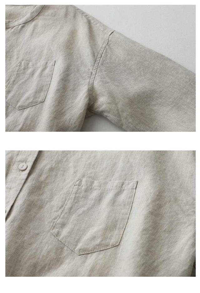 前開き 春秋 シャツ シャツ レディース バンドカラー レディース ブラウス ナチュラル 薄手 リネンシャツ 七分袖 7分袖 リネンシャツ 麻 チュニック ゆったり リネン シャツ 涼しい カジュアル おしゃれ 綿麻 トップス 春 夏
