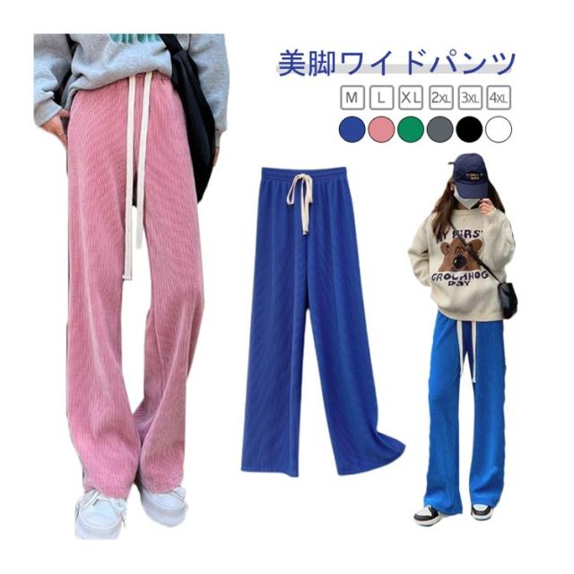 | 美脚ワイドパンツ M-XL ふわっと軽やか シワになりにくくキレイな落ち感 ウエスト総ゴムだからどこからでもラク伸び! | |