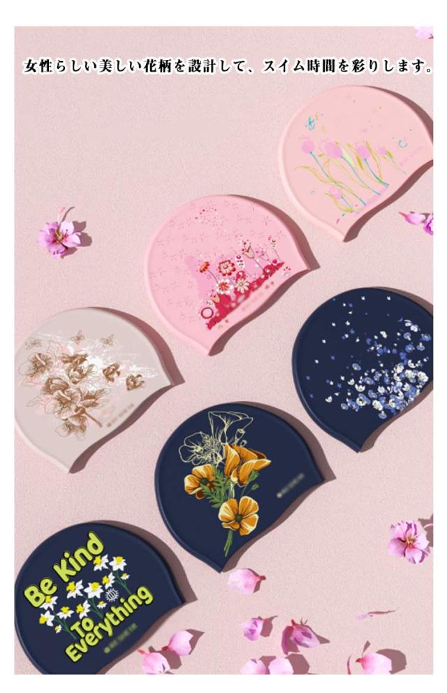 | 美しい花柄のシリコンスイムキャップ 2枚セット 伸縮性抜群なので、髪の毛が長い方でも、まとめて帽子にスマートに収まります。 シリコン素材を用いており、頭にピッタリとフィットするので、水の抵抗を受けにくく、髪が濡れにくいので髪や頭皮を塩素から守ってくれます。 女性らしい美しい花柄を設計して、スイム時間を彩りします。 水中ウォーキングなどのトレーニングや、キッズスイミングの付き添い、ベビースイミングなど、普段のプールで大活躍! | |