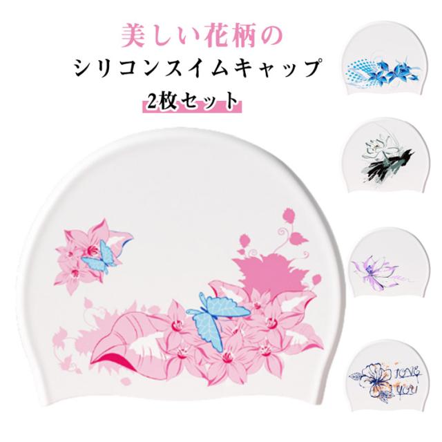 レディース 水泳 かわいい ロングヘア スイムキャップ シリコン 2枚セット 水着用 キャップ 帽子 大人 大人 花柄 大きいサイズ スイムアクセサリー フィットネス水着 上品 おしゃれ キャップ